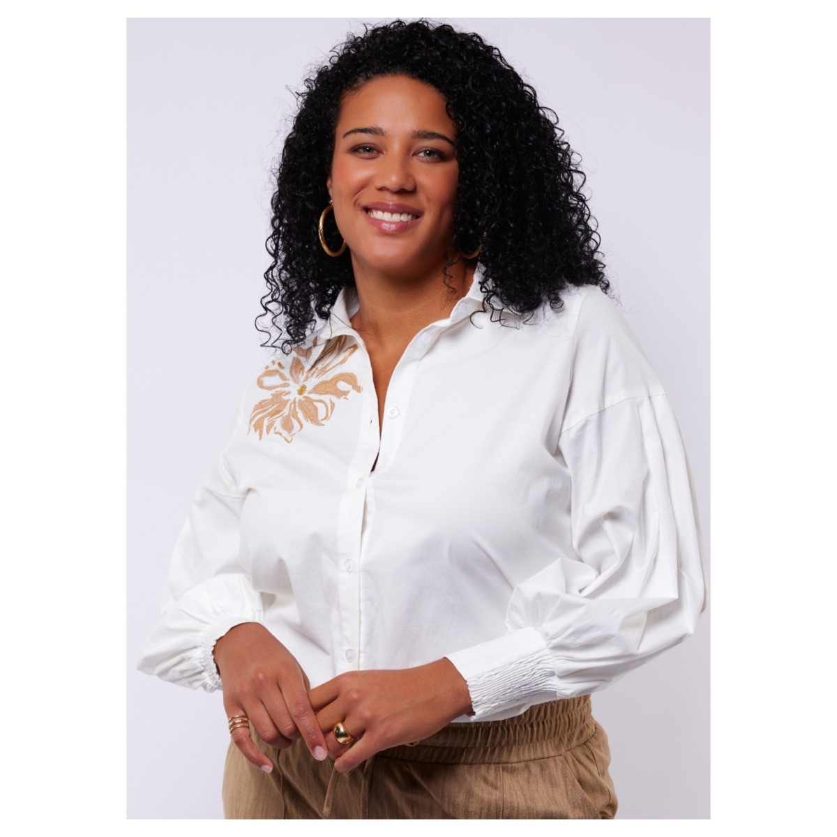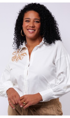 CALISTA BLOUSE OFFWHITE BLOEM GOUD - 42
