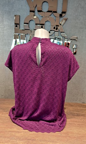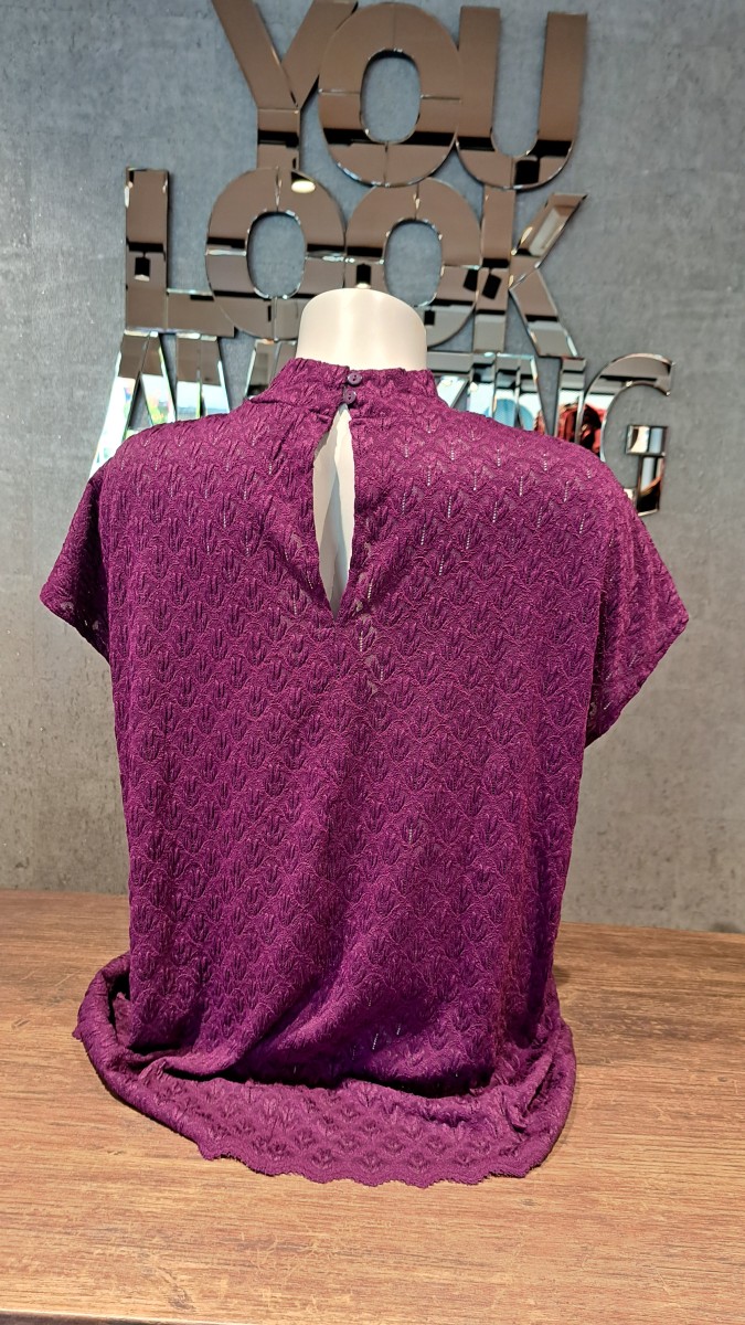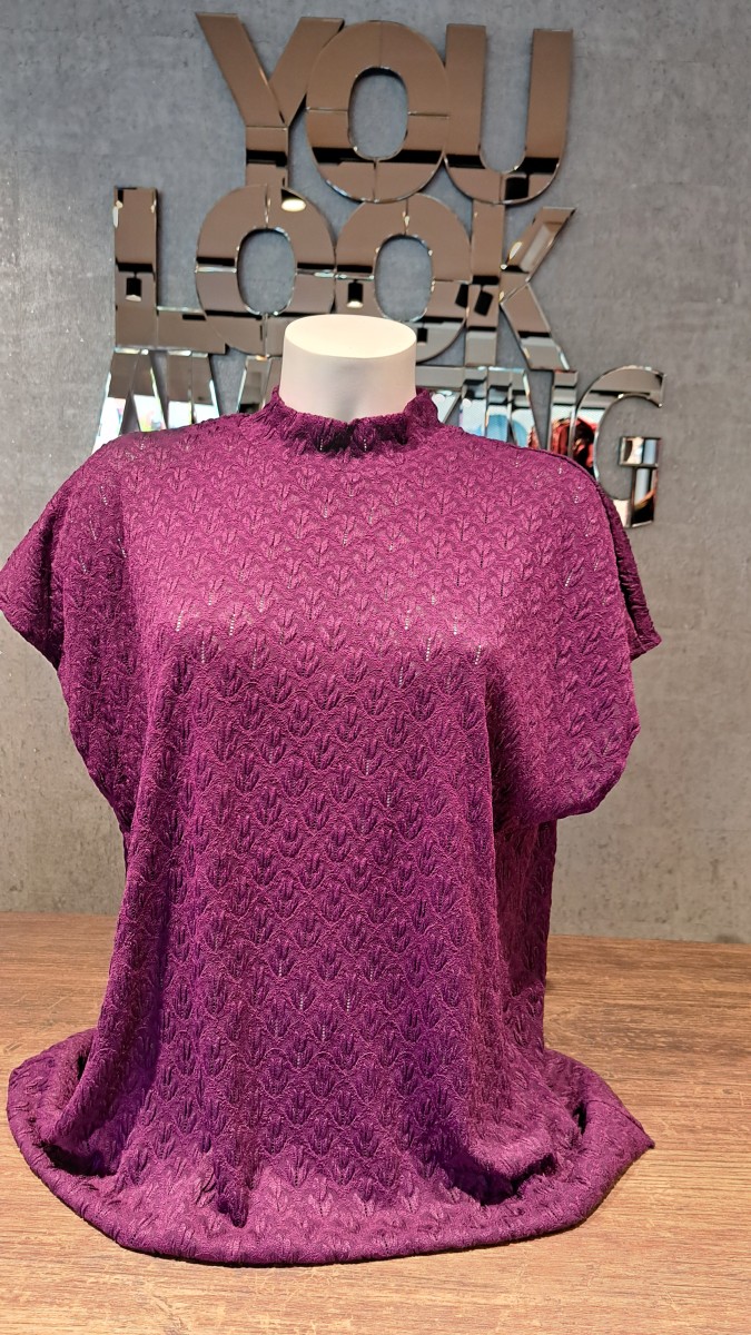 - Een fantastisch mooie wijnrood/paars blous/top met kapmouw.