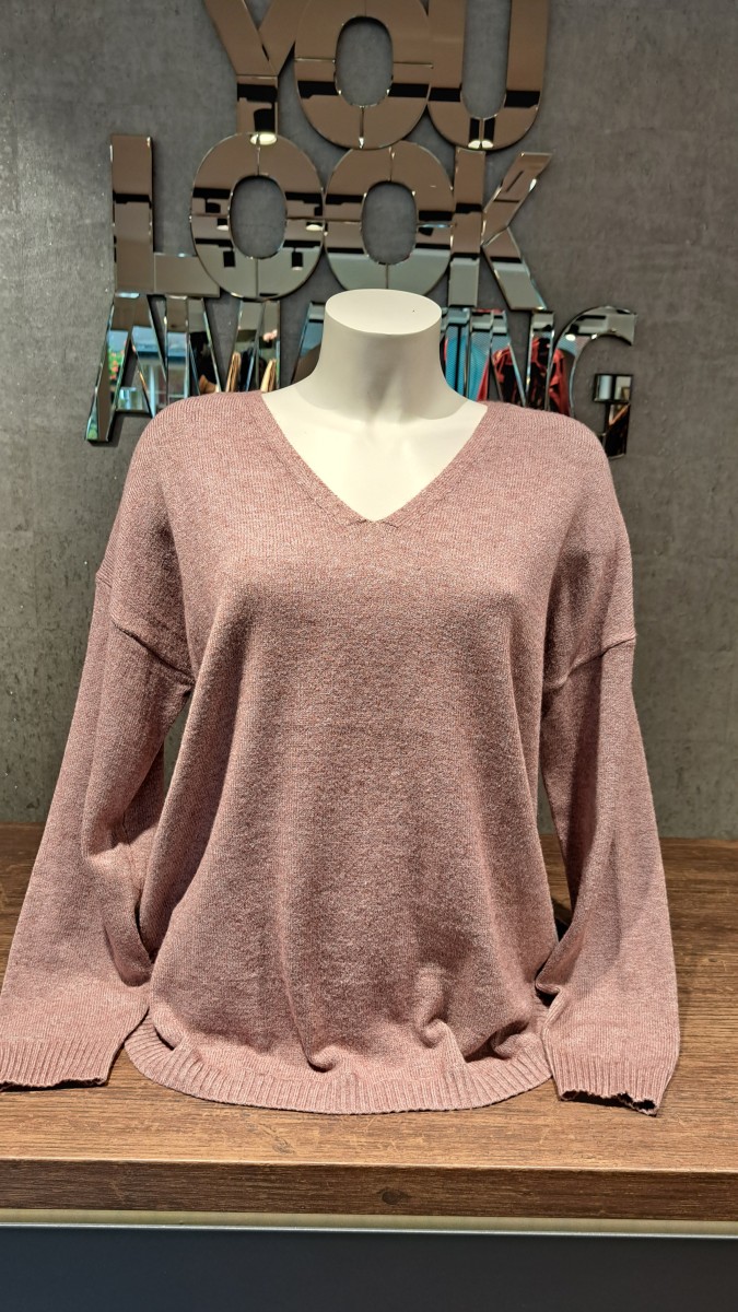 - Only Carmakoma carmargareta trui pullover rose brown/melange styleno 15267203 met v-hals.