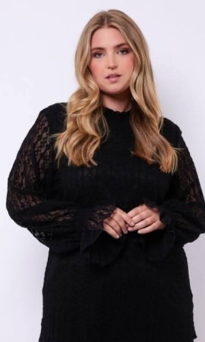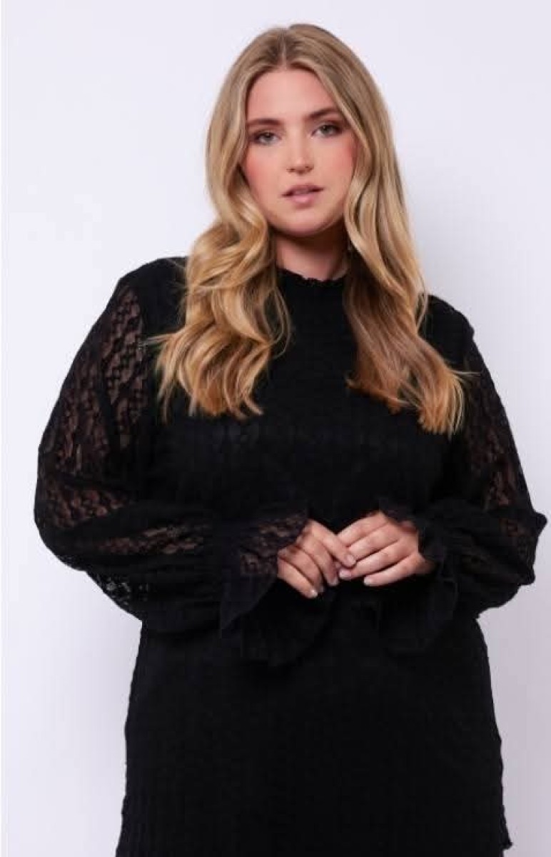 - Exxcellent cecilia top kant black zwart met lange mouw.