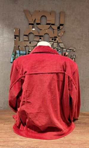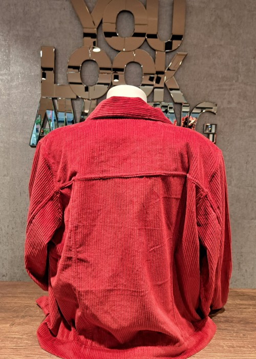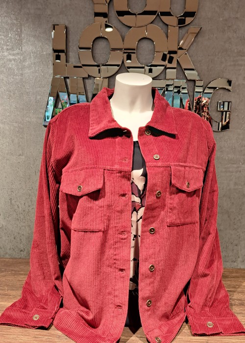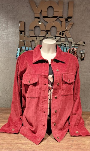 - Orientique cord solid boxy jacket rood 23019 met knopen aan voorzijde.