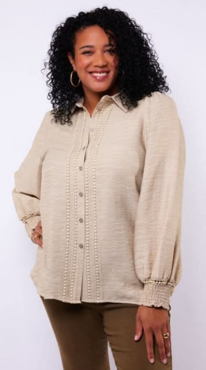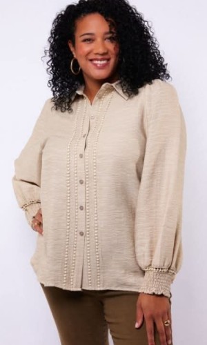 - Exxcellent Eden blouse sand (zandkleur) met mooie kraag en knoopjes aan de voorzijde.