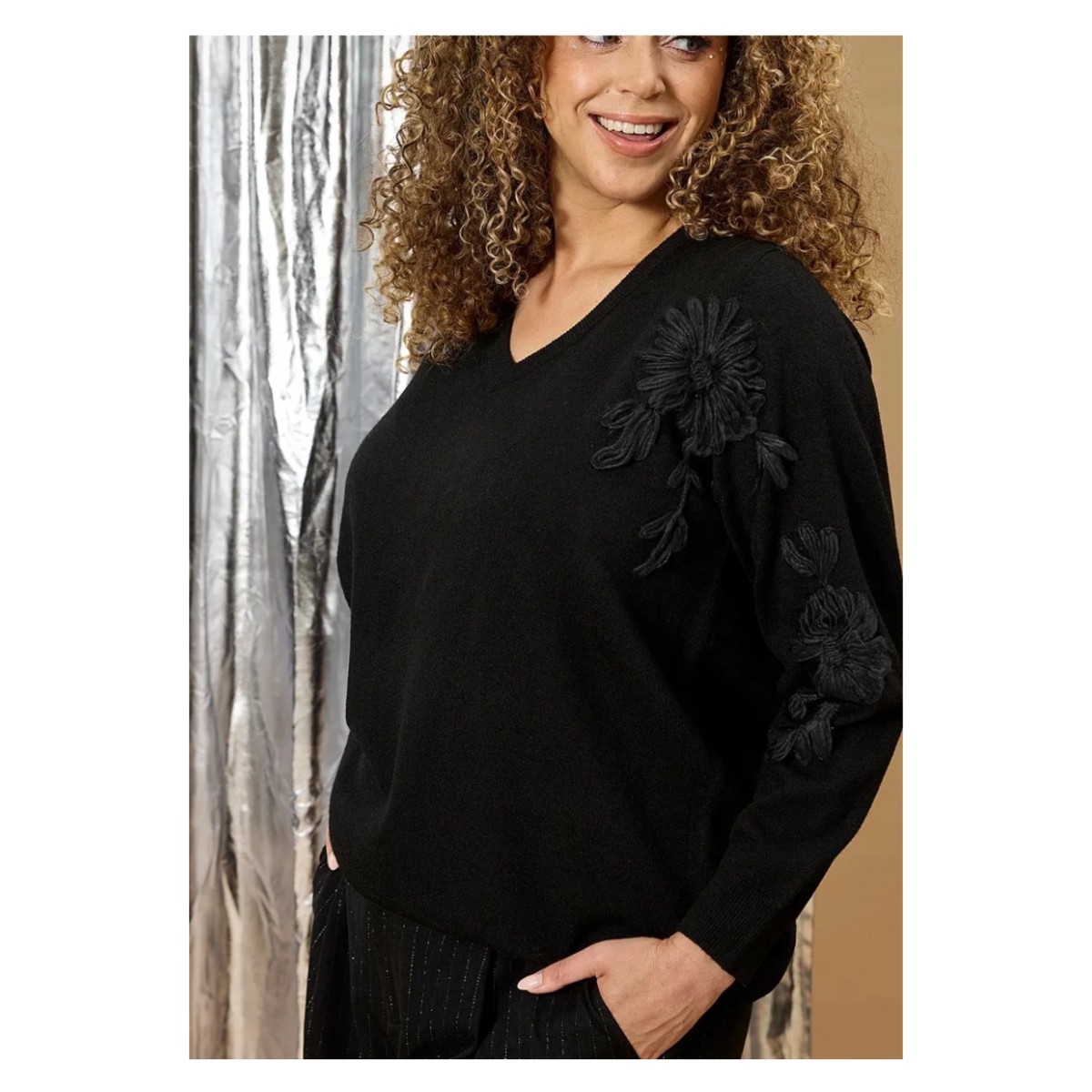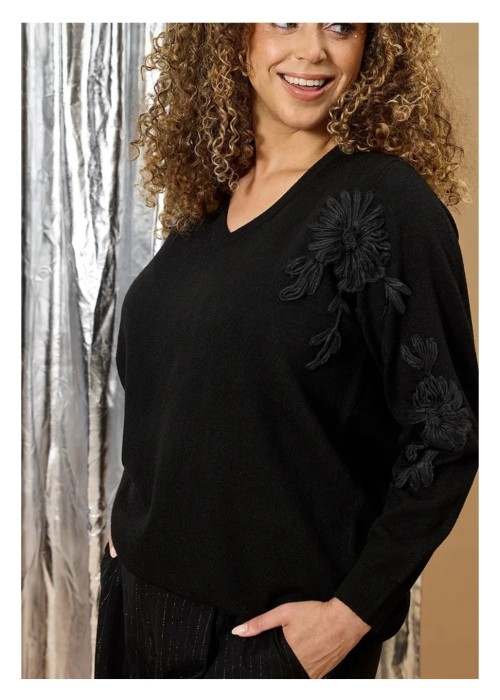 - Zhenzi zh-elga 1241 item 201241 color 09000 zwart met v-hals.