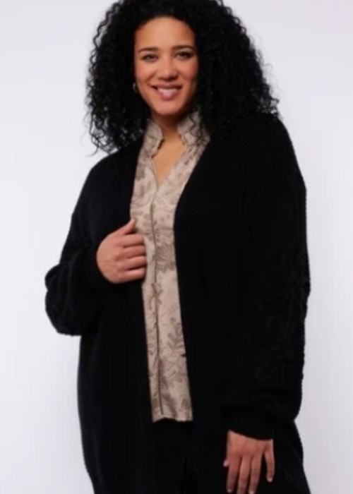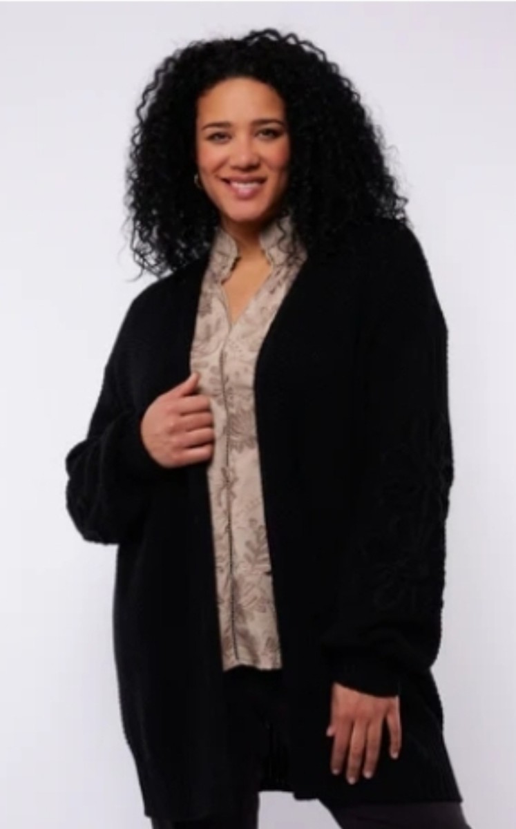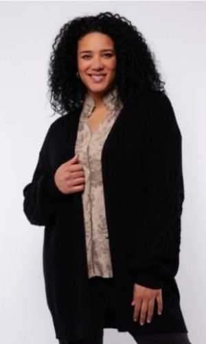 - Bij de afbeelding is de zandkleurige als voorbeeld toegevoegd om het gehaakte op de mouwen goed te kunnen zien wat de zwarte ook heeft.