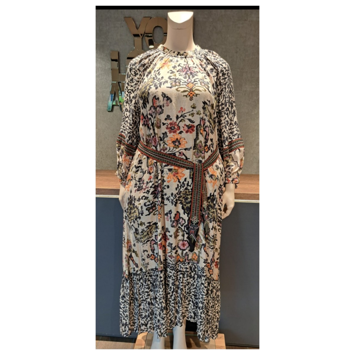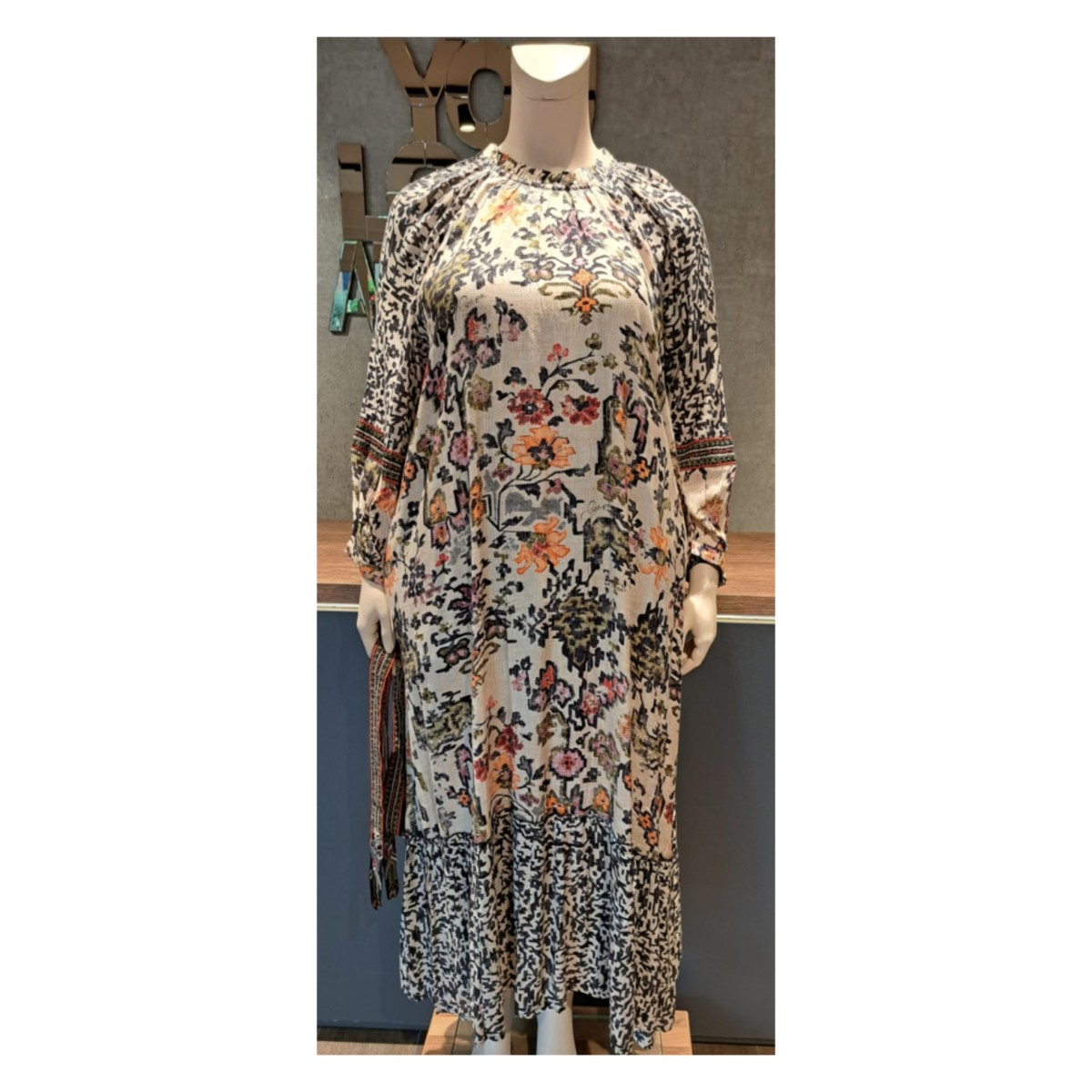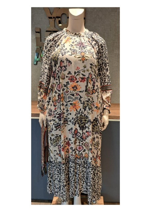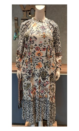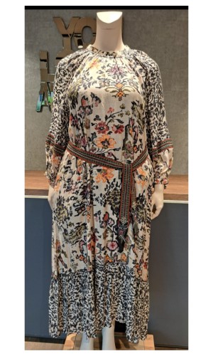 - Escape by Orientique jardin dress maxi prent met aangesloten turtle halsje met knoop aan de achterzijde in de nek.
