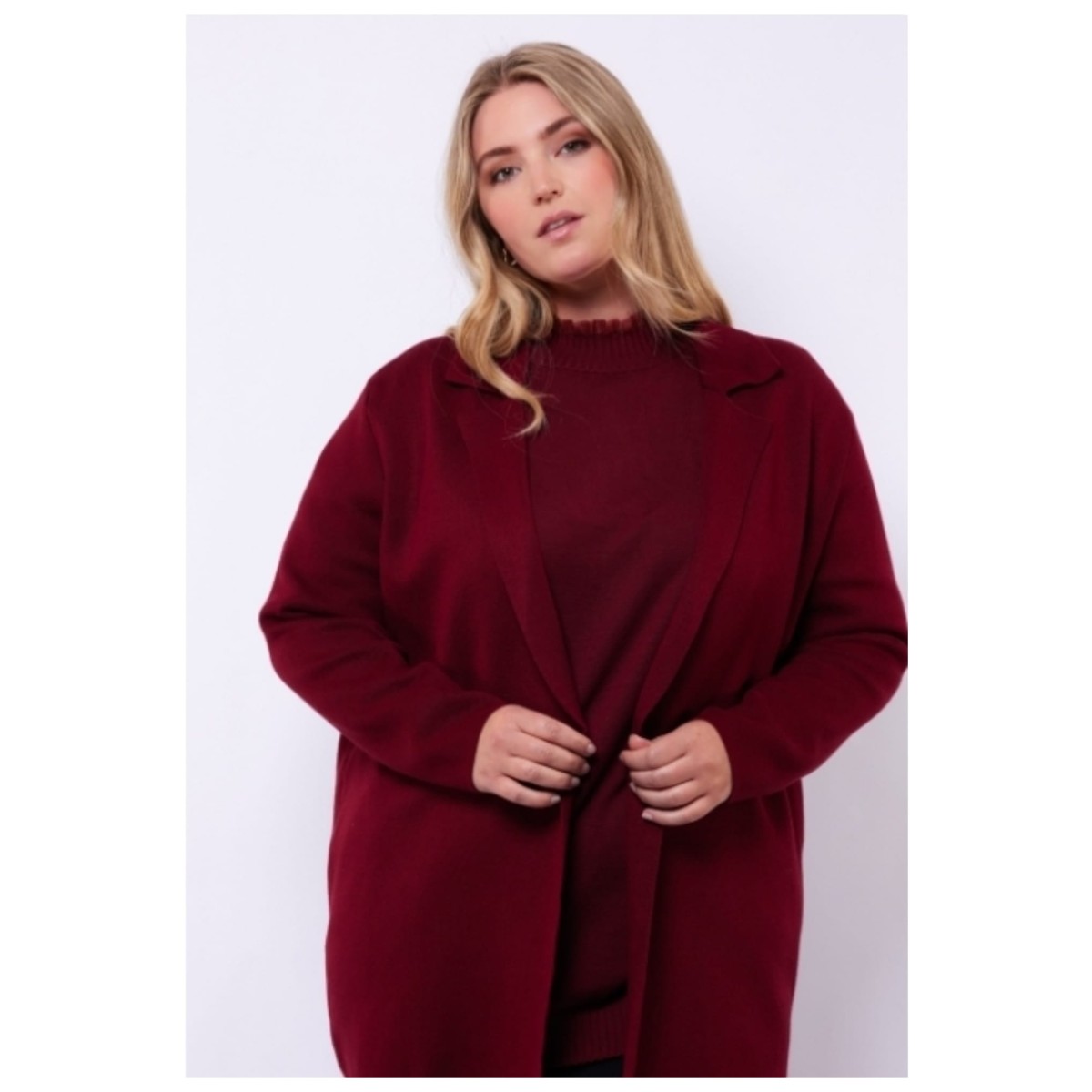 - Exxcellent Josine knip cardigan amorone cabernet blazer vest bordeaux wijnrood middellang model.