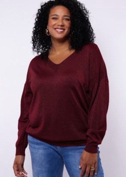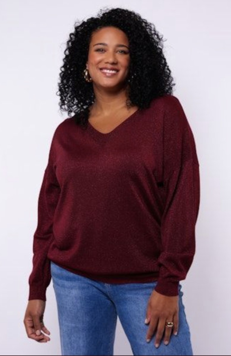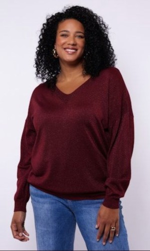- Exxcellent kirsten knip pullover amarone cabernet bordeaux kleur met glitter.