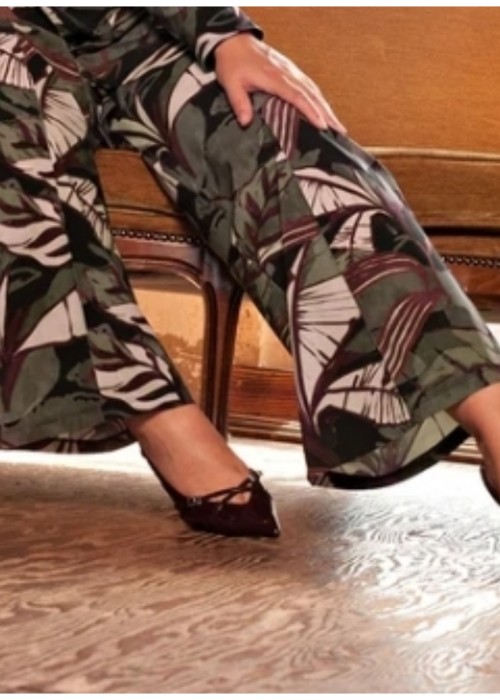 - Plus Basic mystic leaves pants wide met mooie elastiek in de boord.