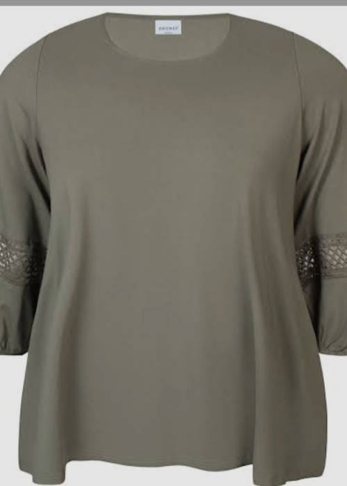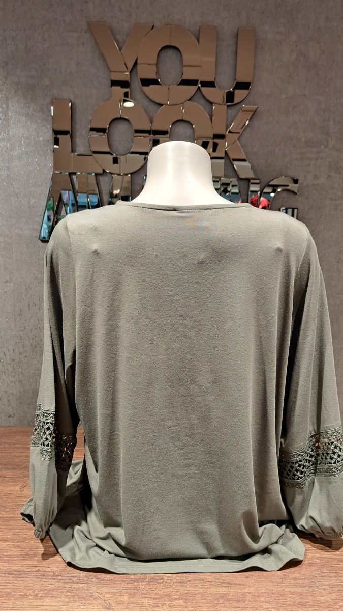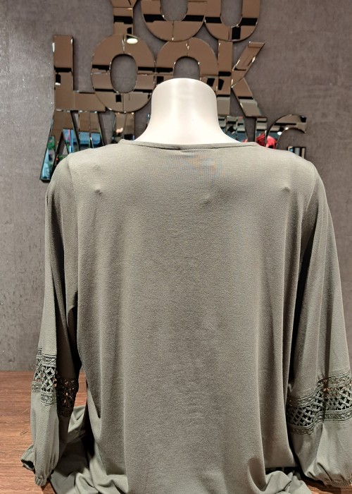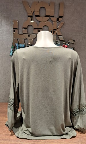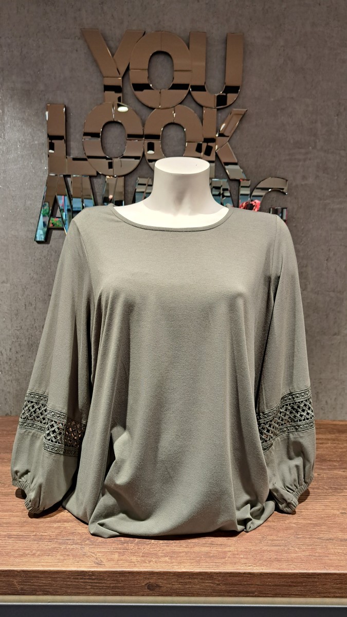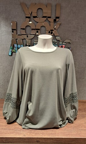 - Prachtig detail met broderie op de mouw en onderaan elastiek.