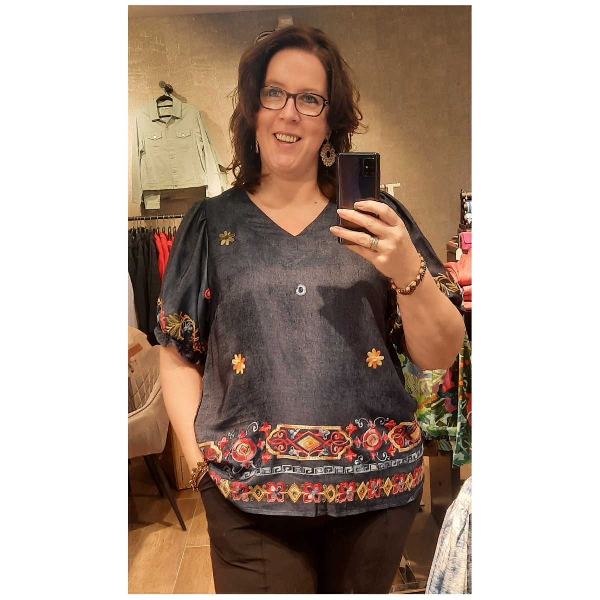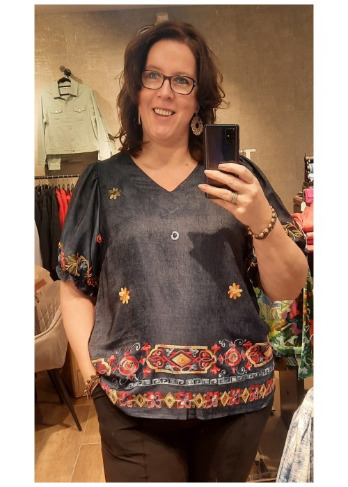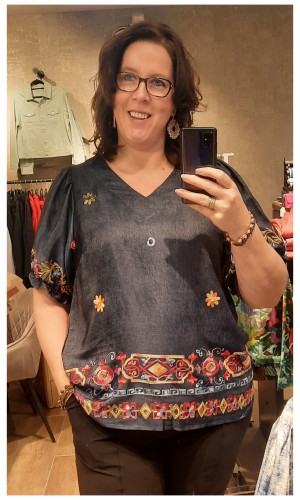 - Blouse is heel mooi afgewerkt met geborduurd bloemmotief.