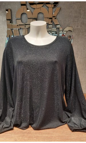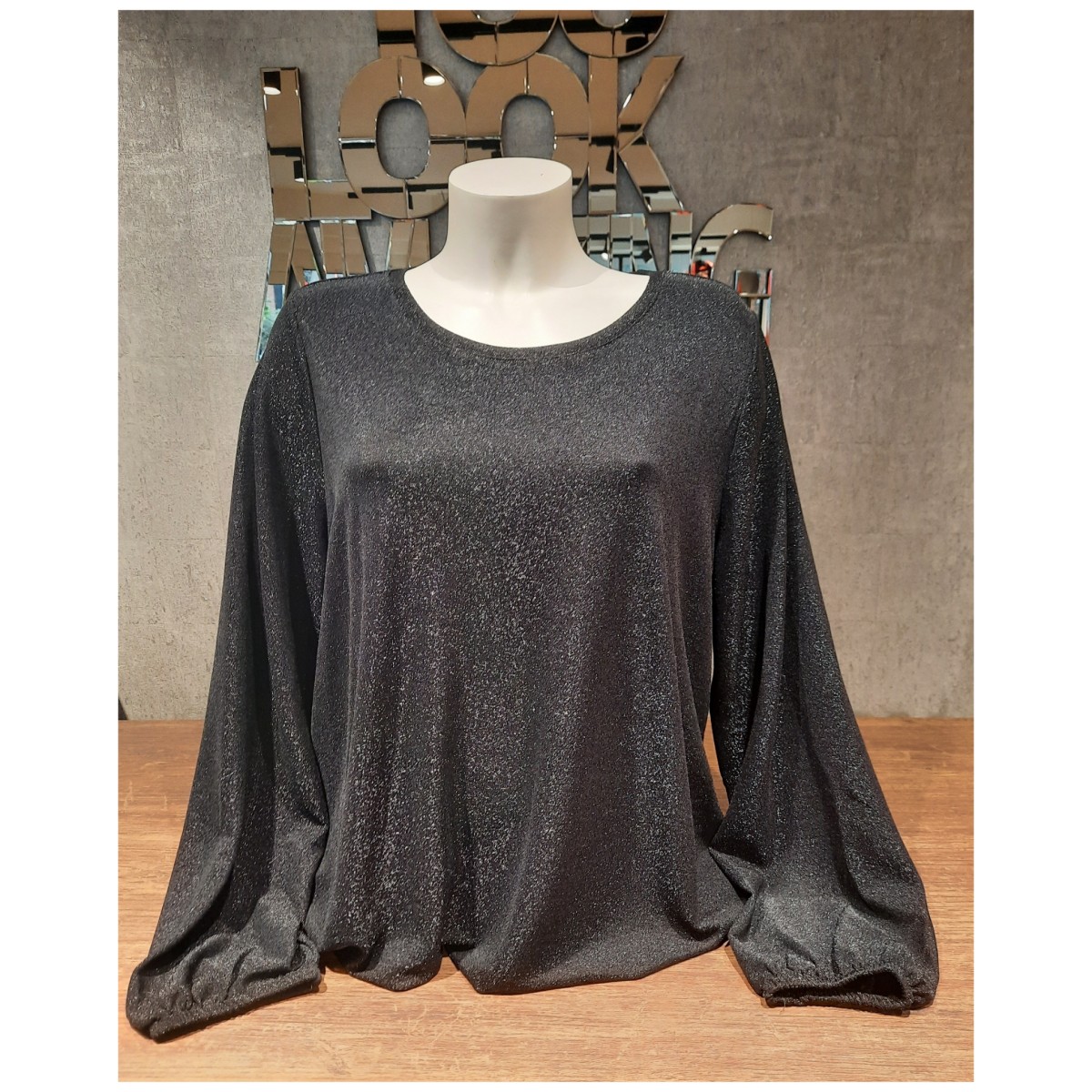 - Mooie blouse shirt zwart met een zilveren glimmetje en lange mouwen.