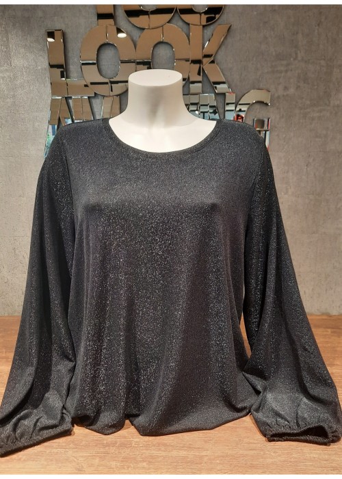 - Exxcellent zh-Toby 1113 blouse shirt zwart glitter. Item 201113 color 09000 met ronde hals.